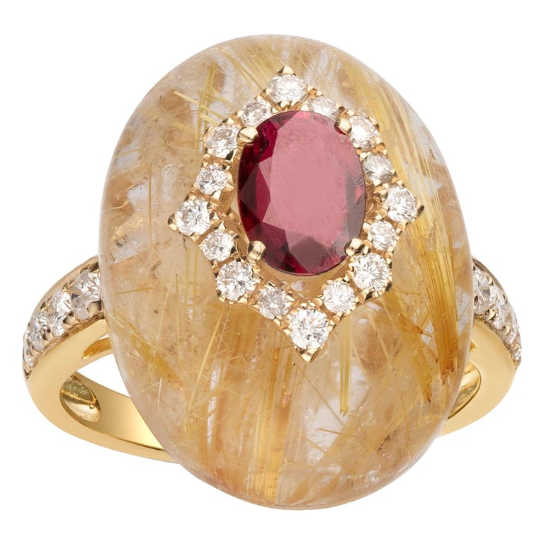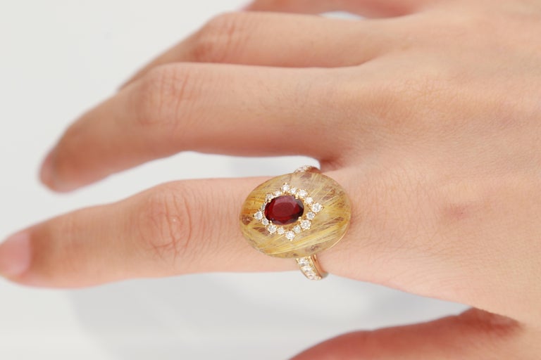 Rutilated Quartz, Diamond and Ruby Ring by Lydia Courteille