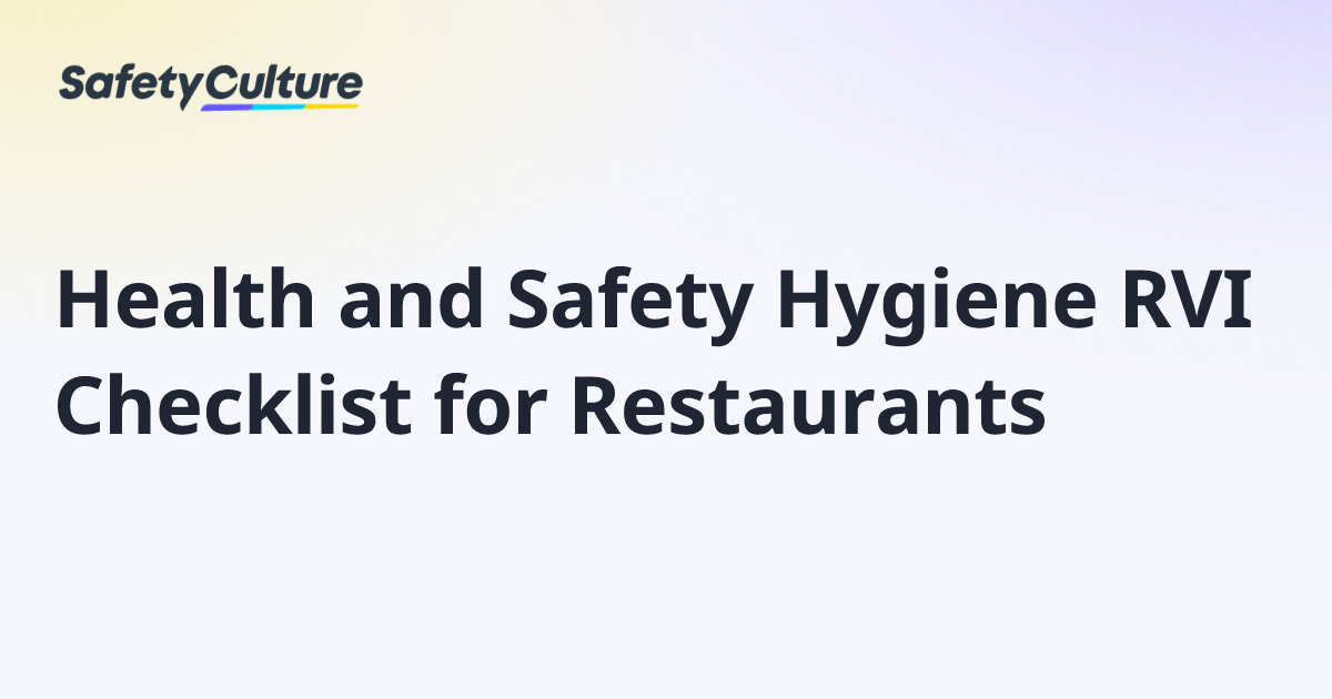 Health and Safety Hygiene RVI Checklist for Restaurants | Free Template