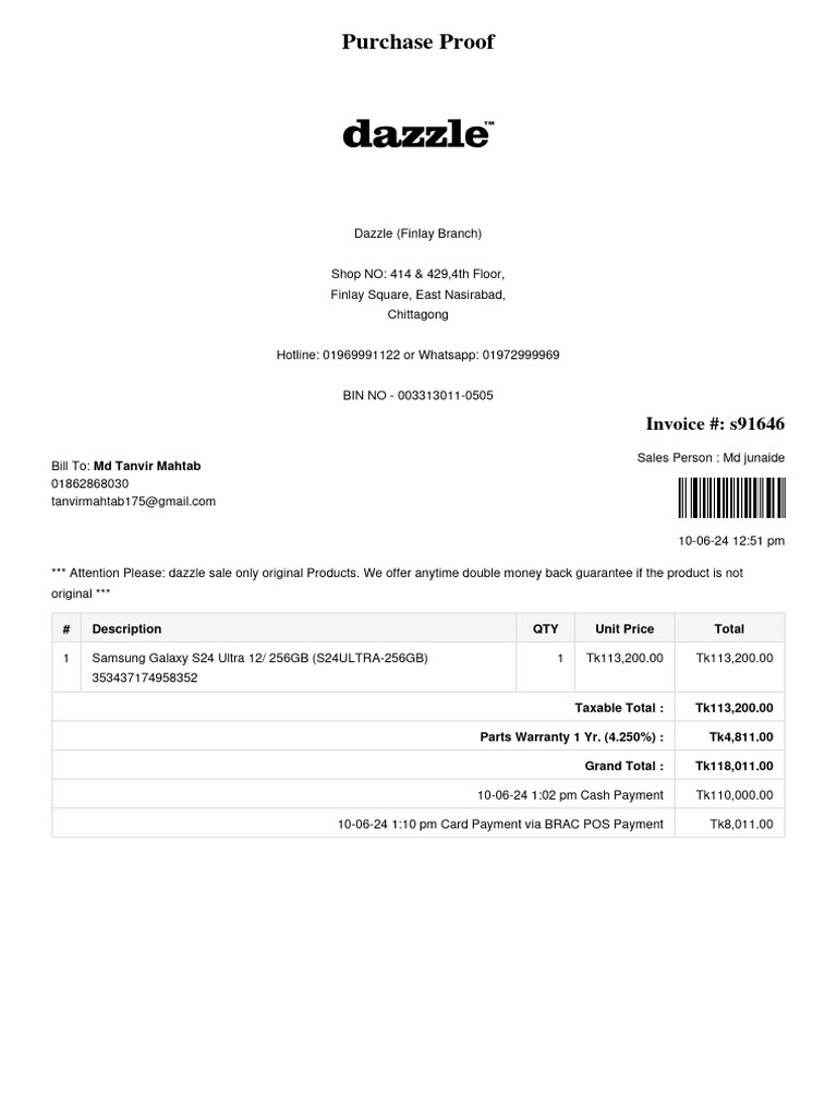 Dazzle Invoice for Samsung Galaxy S24 | PDF | Apple Inc.