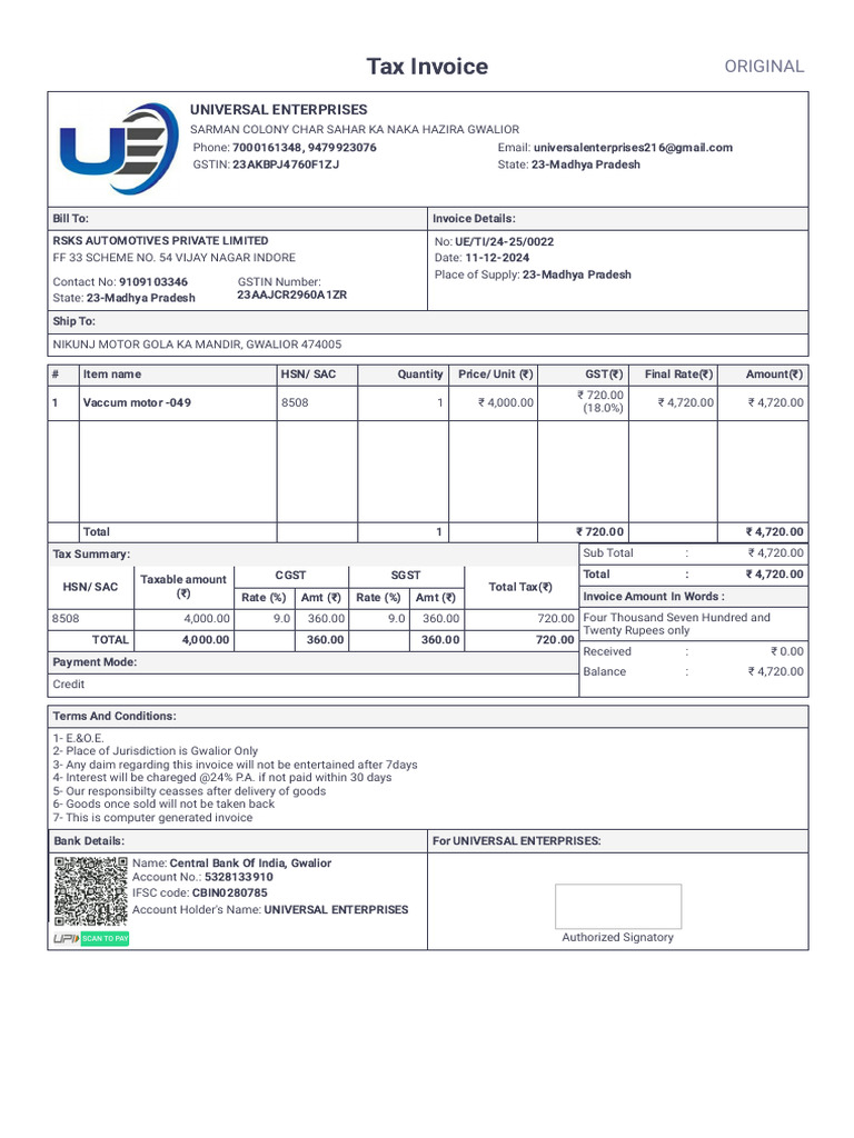 Invoice for RSKS Automotives | PDF | Invoice | Public Finance