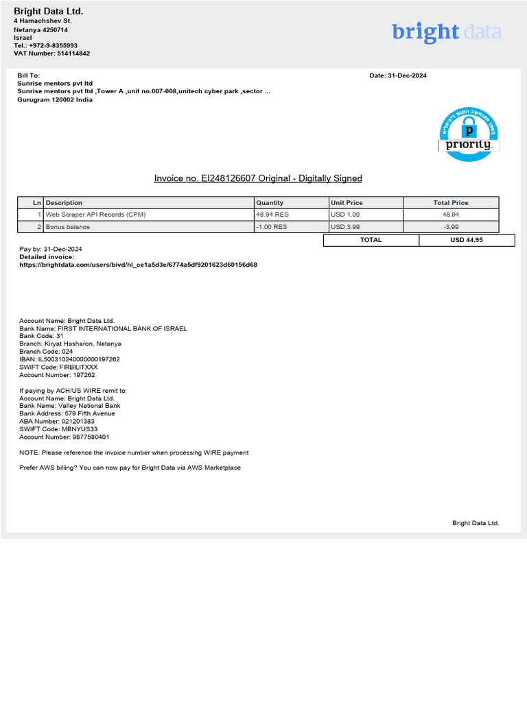Invoice - 28 December 2024 | PDF