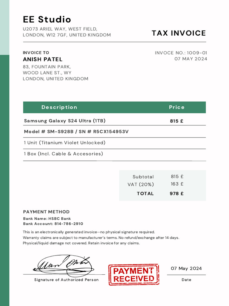 UK Invoice S24 Ultra1 | PDF