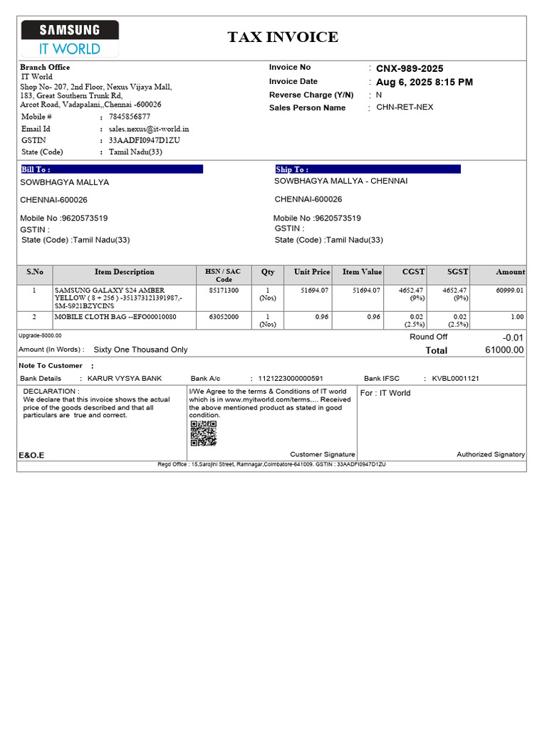 Samsung s23 Ultra Invoice | PDF | Taxation | Government Finances