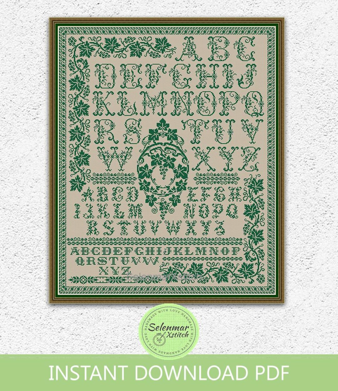 Leafy Monochrome Cross Stitch Pattern Vine Leaves Quaker Cross Stitch ...