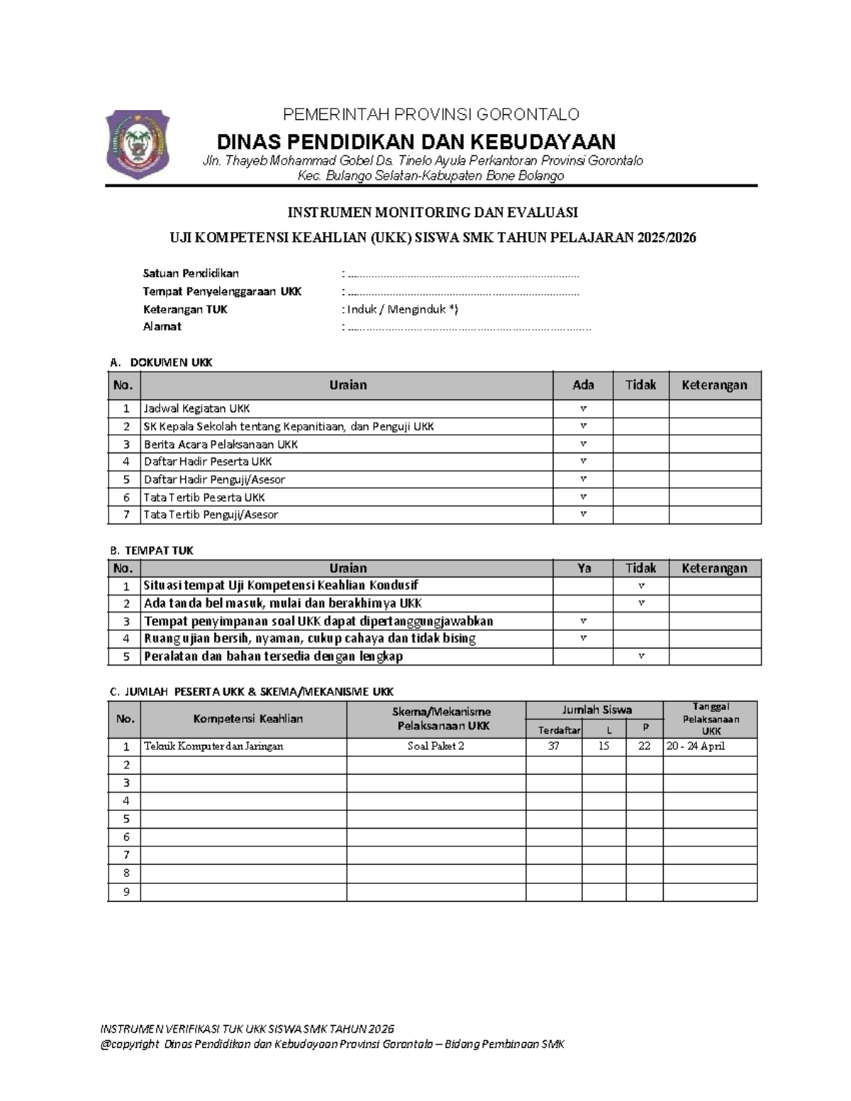 2026 Instrumen Monev UKK SMK TKJ: Monitoring dan Evaluasi - Studocu
