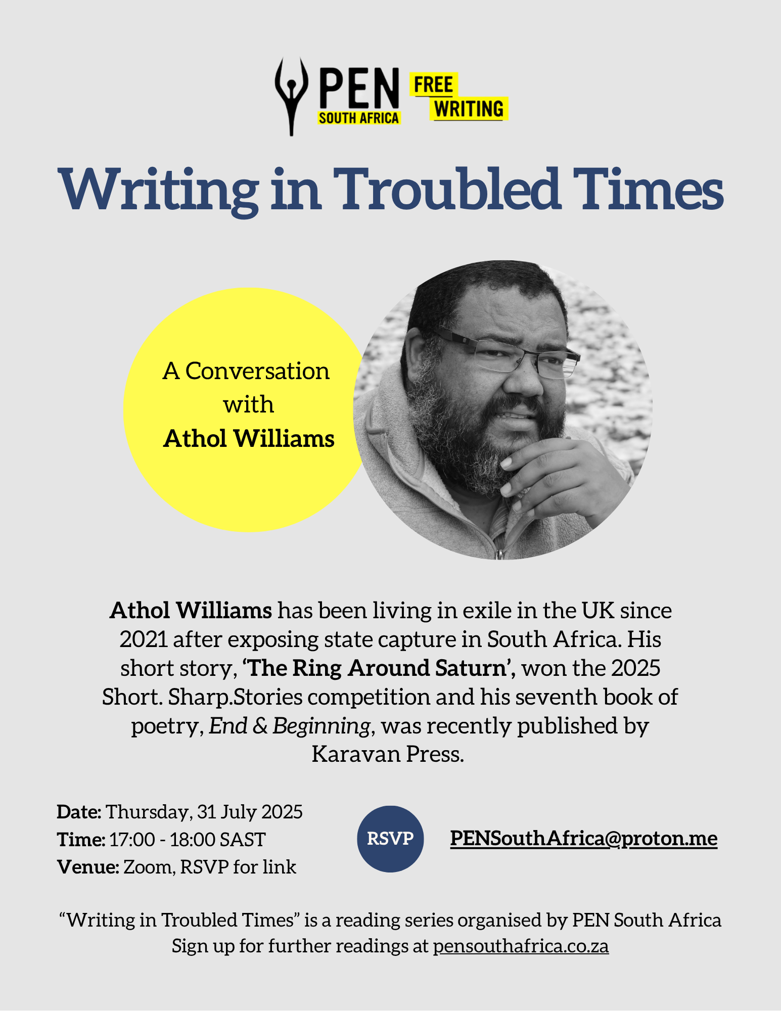 PEN SA: WRITING IN TROUBLED TIMES – A Conversation with Athol Williams