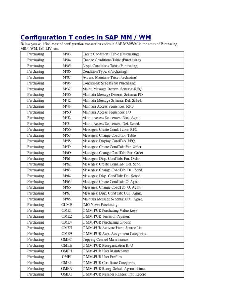 Configuration T Codes in SAP MM | PDF | Specification (Technical ...
