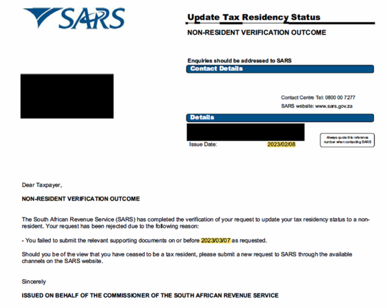 Tax Non-Residency Letter – What To Do When SARS Rejects Your Application?