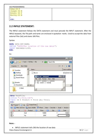 SAS Programming by Example (1) : Chapter 1 Input and Infile | PDF