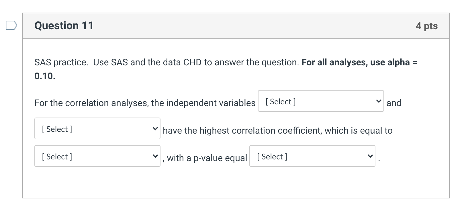 Solved Question 11 4 pts SAS practice. Use SAS and the data | Chegg.com