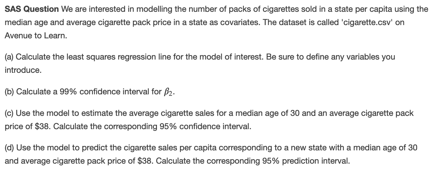 SAS Question We are interested in modelling the | Chegg.com