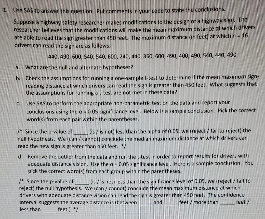 Solved 1. Use SAS to answer this question. Put comments in | Chegg.com