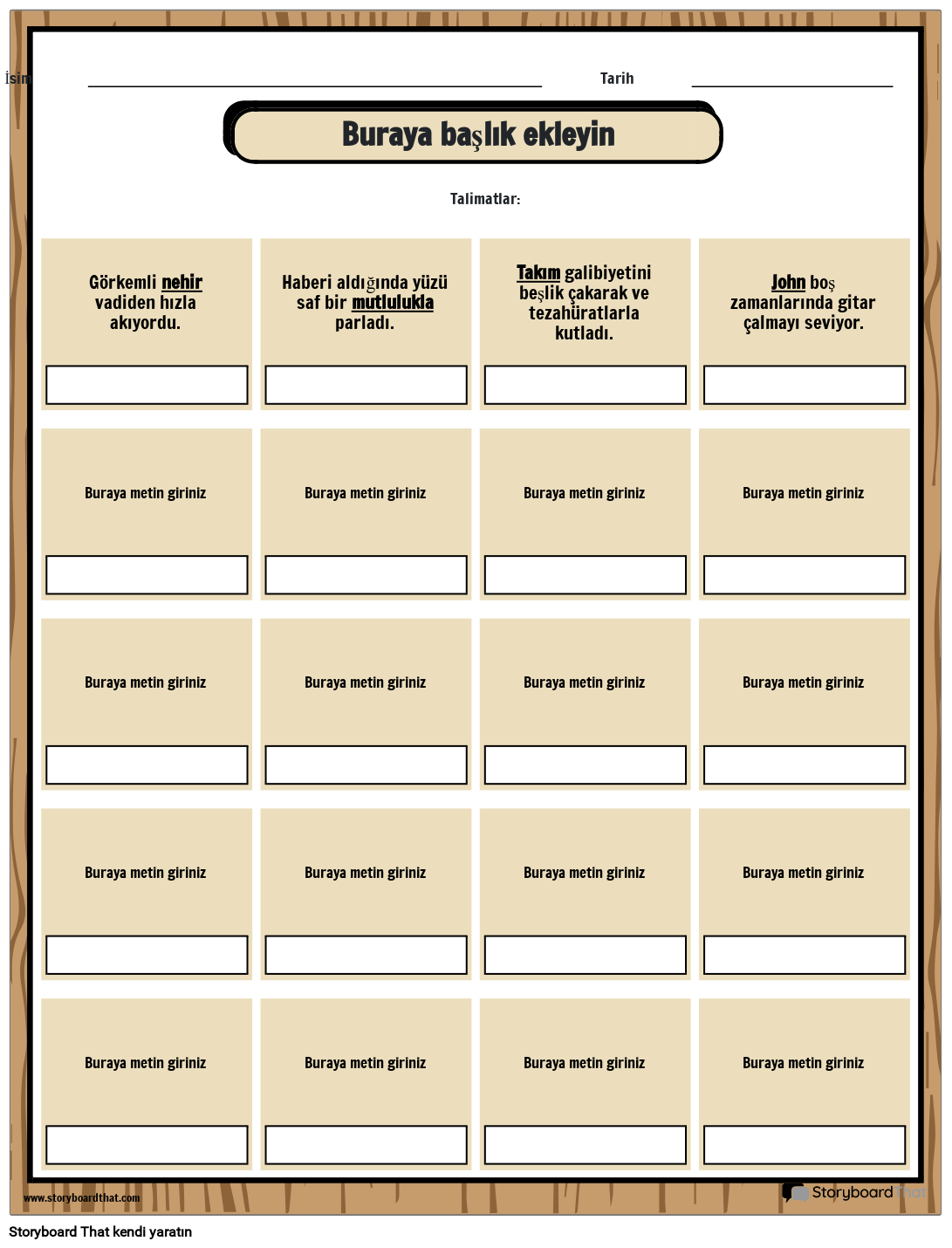 İsim Türlerini Tanımlama Çalışma Sayfası Storyboard