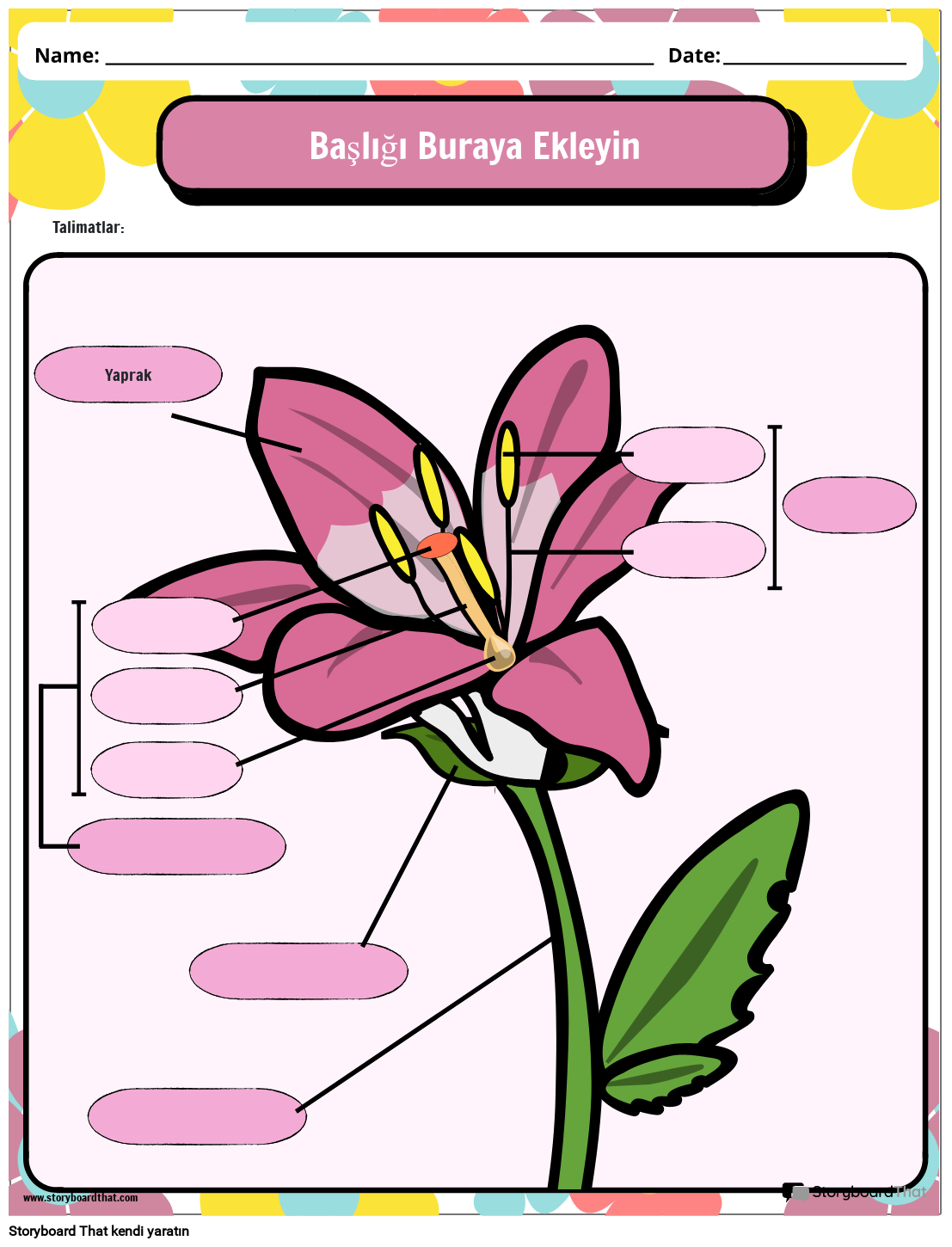 Çiçeğin Parçaları (Orta Seviye) Çalışma Sayfası