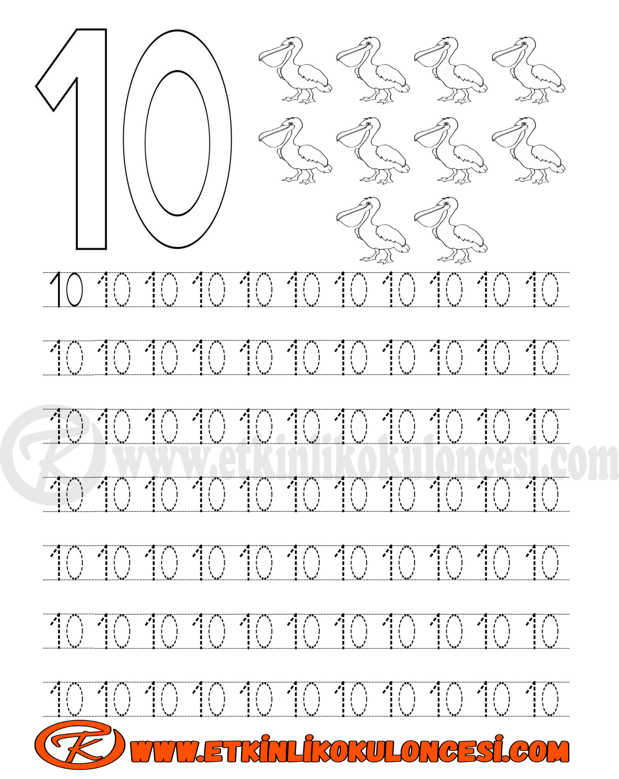 1 den 10 a RAKAM YAZMA ÇALIŞMA SAYFASI,OKUL ÖNCESİ ÖDEV SAYFASI,1,2,3,4 ...