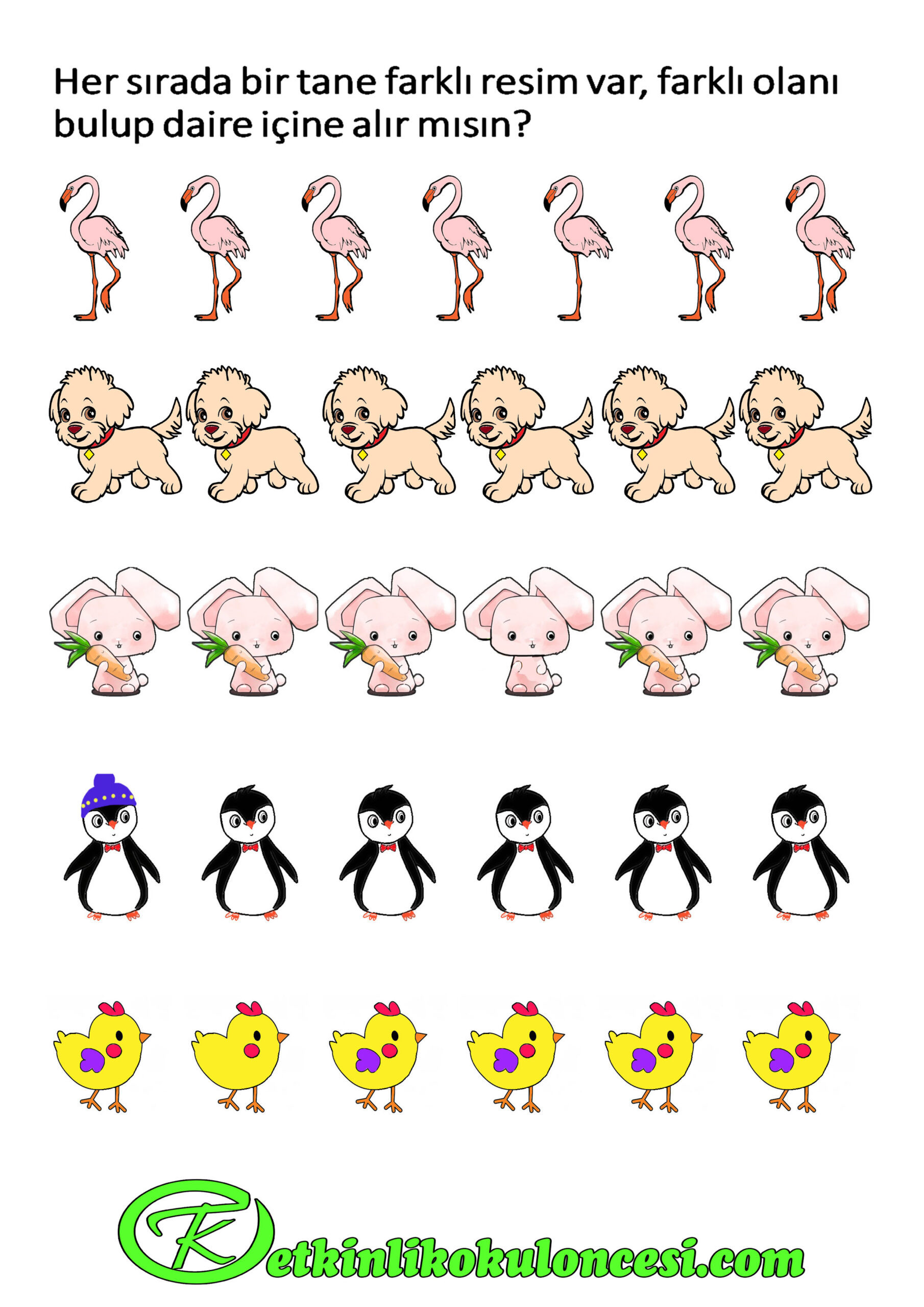 FARKLI OLANI BUL ÇALIŞMA SAYFASI – OKUL ÖNCESİ ETKİNLİKLER