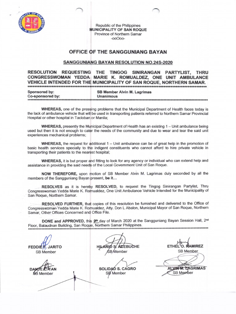 SB-Resolution - Example of Sanguniang Resolution - Republic of the ...
