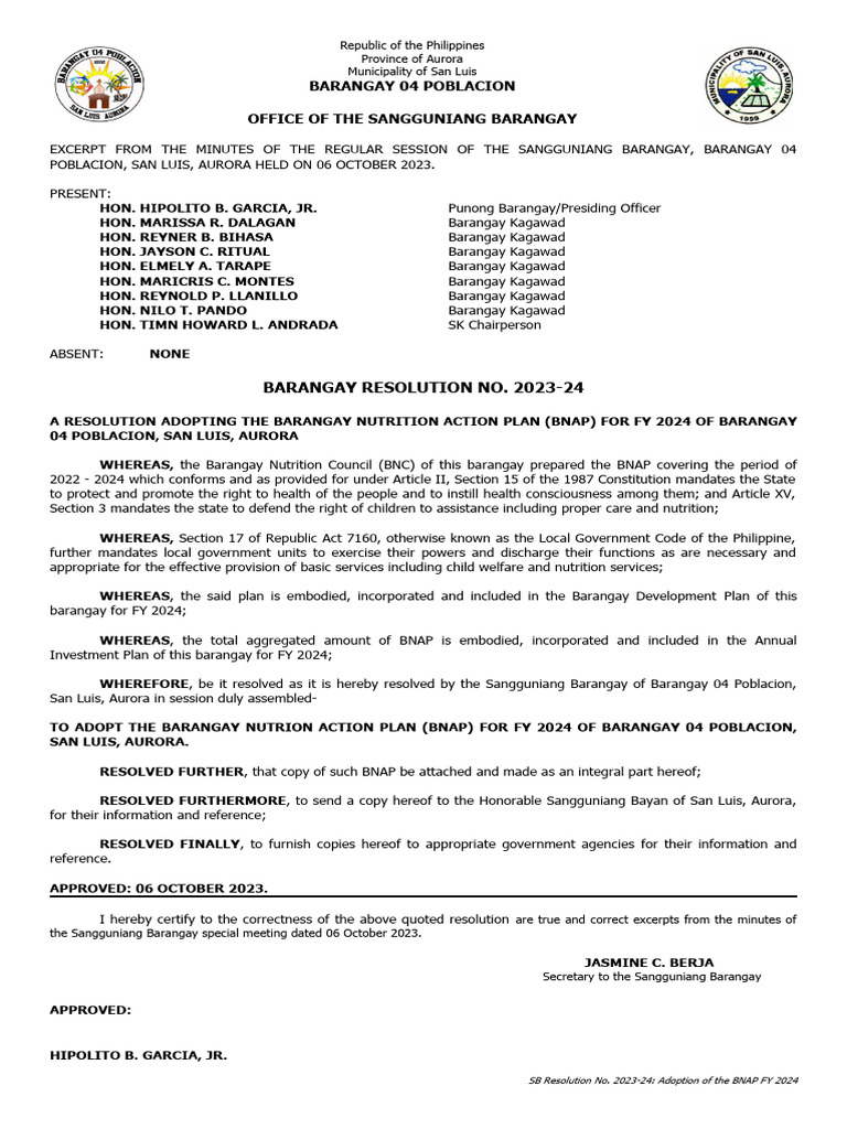 Sample - TEMPLATE-SB-RESOLUTION-APPROVING-THE-BARANGAY-DTP | PDF ...