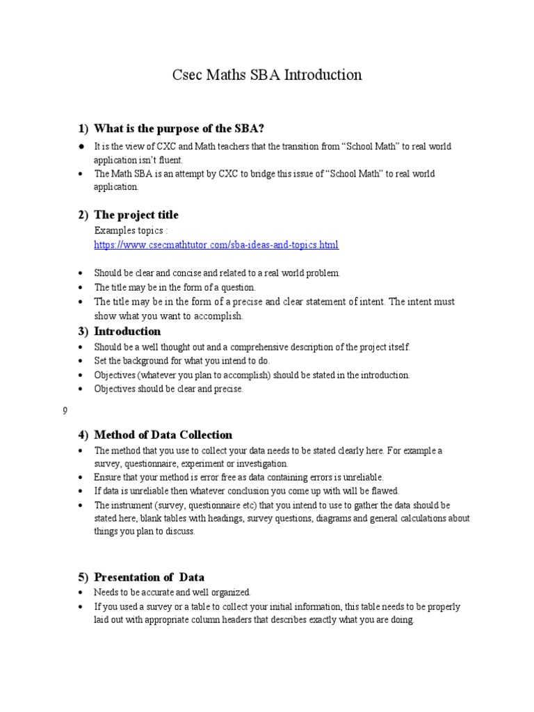 Csec Maths SBA Introduction | PDF | Teaching Mathematics | Data