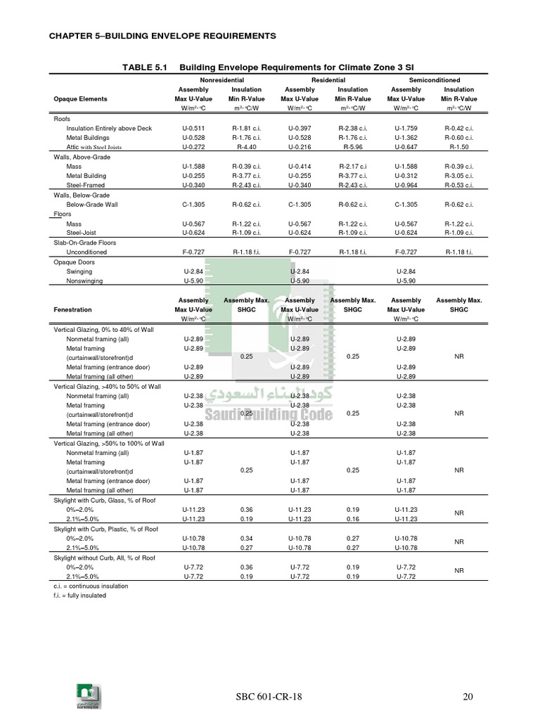 Chapter 5-Building Envelope Requirements: SBC 601-CR-18 20 | PDF ...