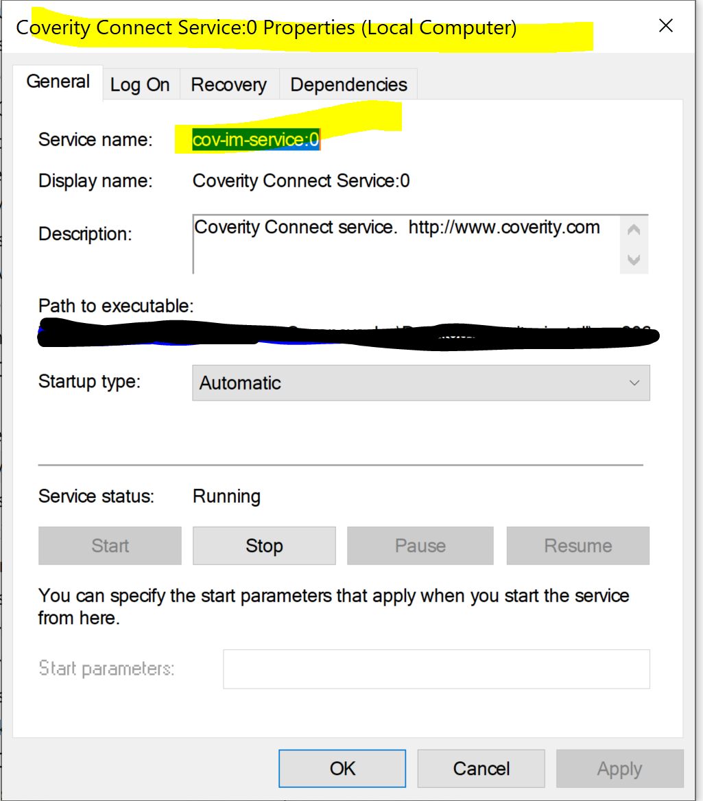 How to use sc command in windows to start/stop Coverity Connect?