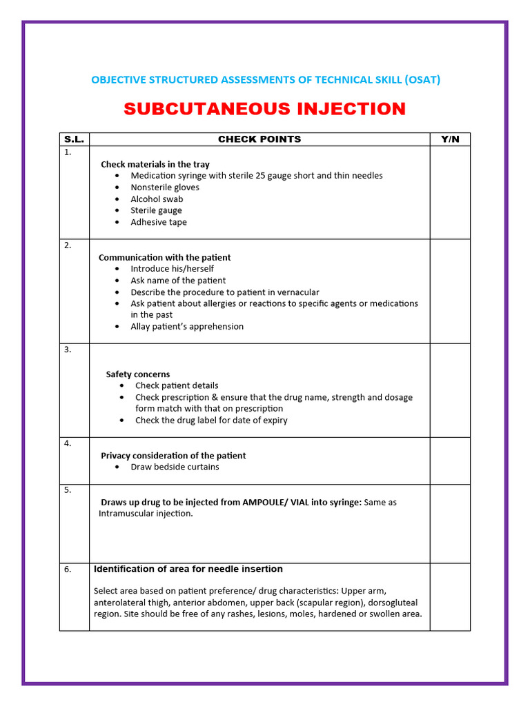 Subcutaneous Injection (SC injection) - OSCE Guide | UKMLA | CPSA ...