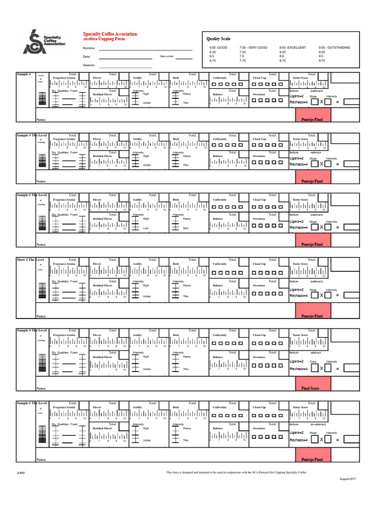 SCAA Score Sheet | PDF | Coffee | Food And Drink