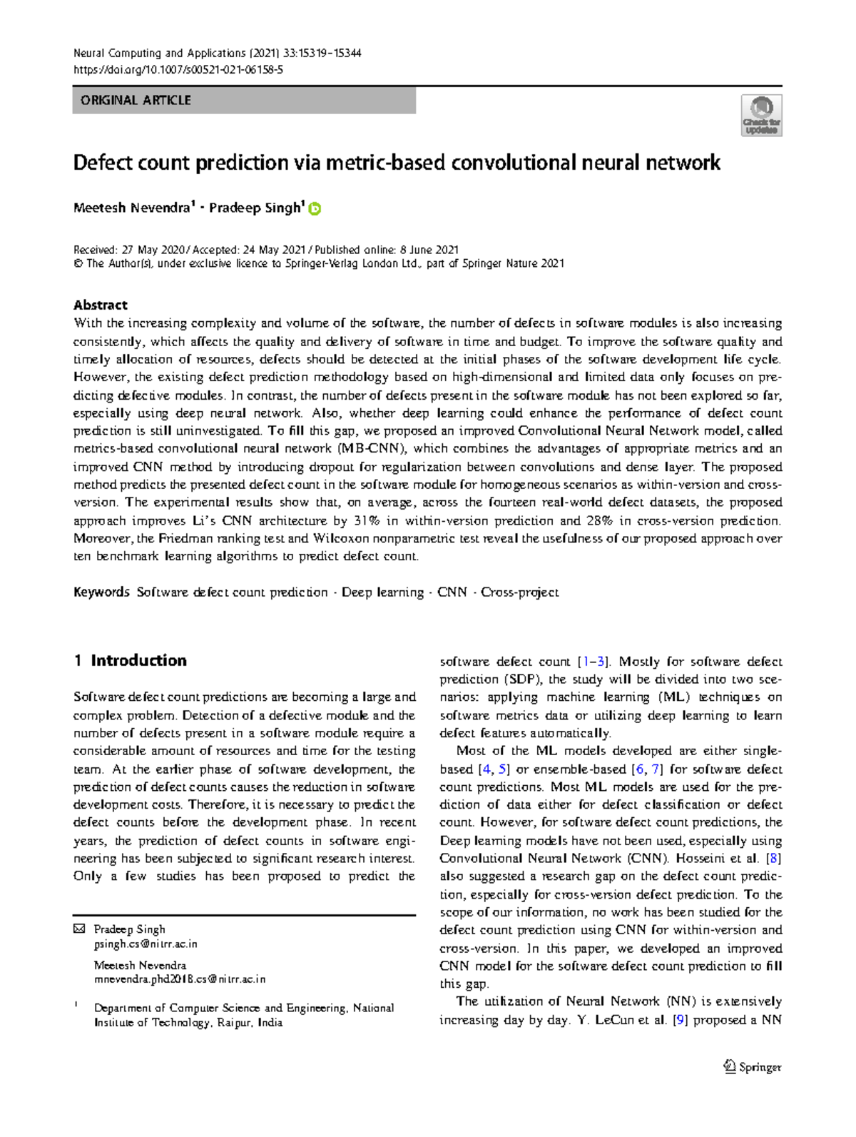 2021 Defect count prediction via metric based convolutional neural ...