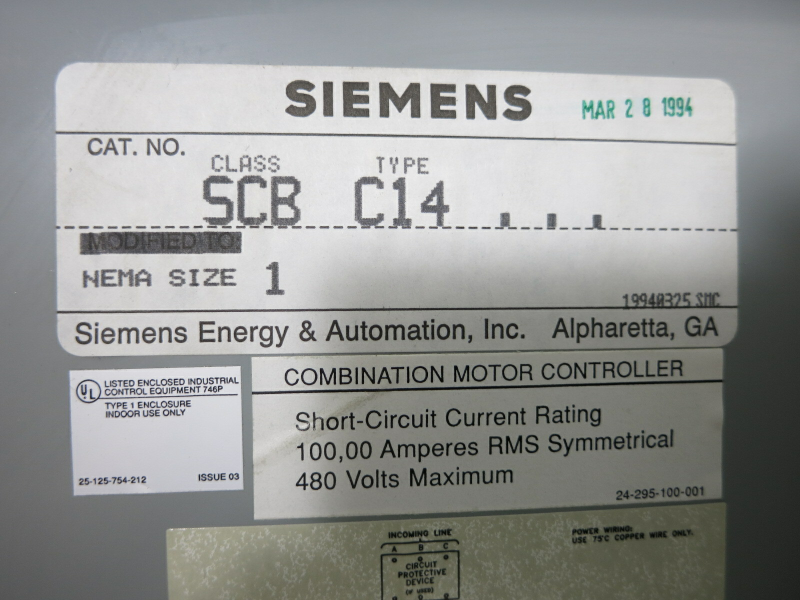 Siemens SCB-C14 Size 1 Starter 25 Amp Breaker Combination Box Sz1 25A ...