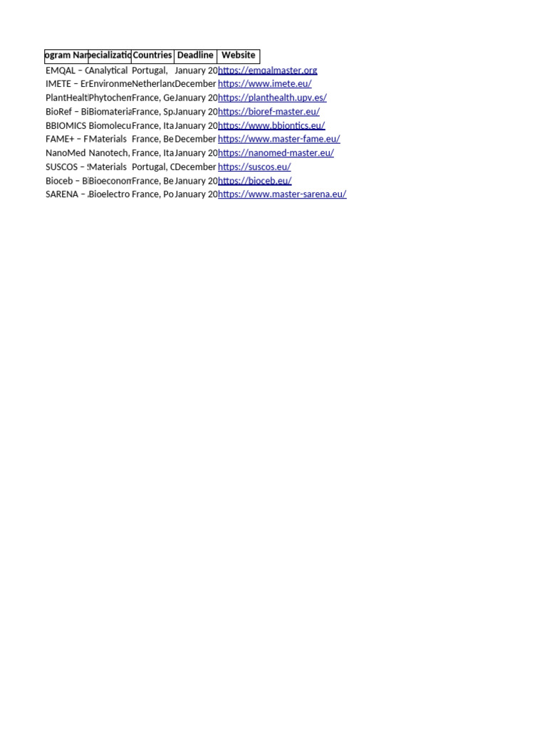 Erasmus Biochem Programs Tracking | PDF