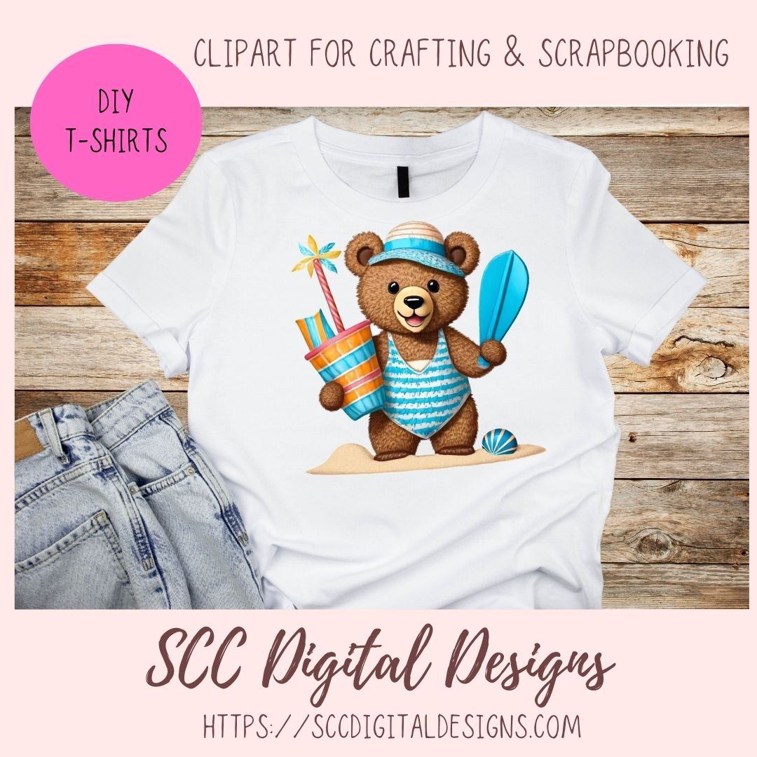 Beach Bears PNG, Whimsical Wildlife Digital Printable Sticker Set for ...