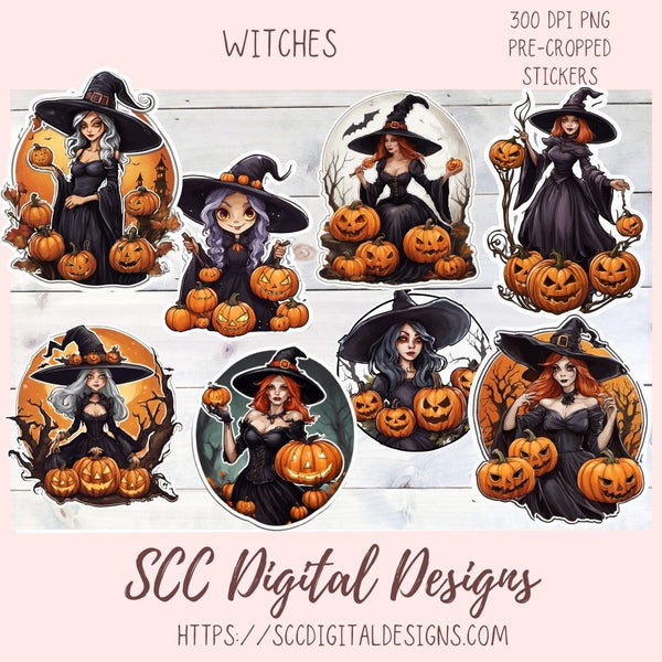 Witch PNG, Pre-Cropped Digital Stickers, Print & Cut for Paper Planner ...