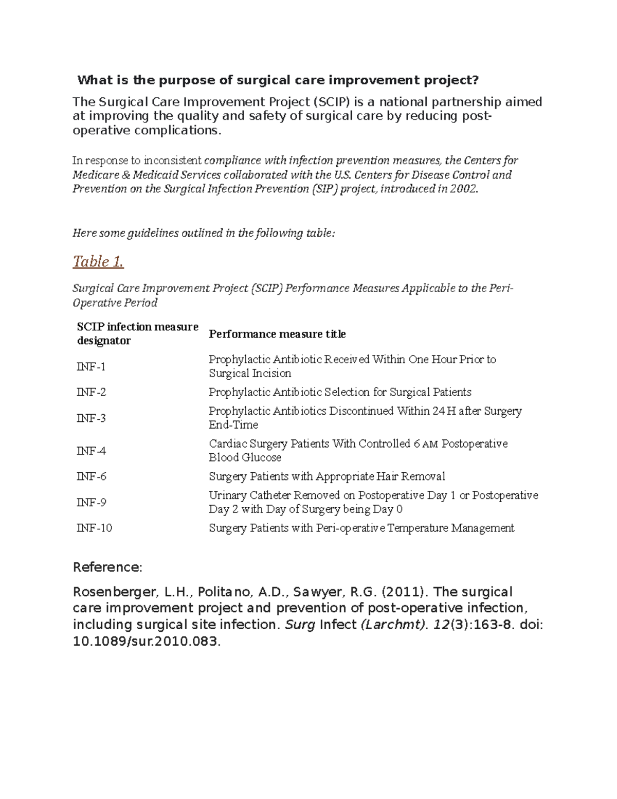 Table 1 from The Surgical Care Improvement Project (SCIP) Initiative to ...