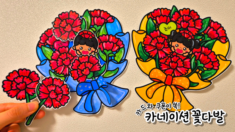 [프리미엄 도안 카드와 쿠폰이 있는 카네이션 꽃다발] 카네이션 카드 / 어버이날 / 스승의 날