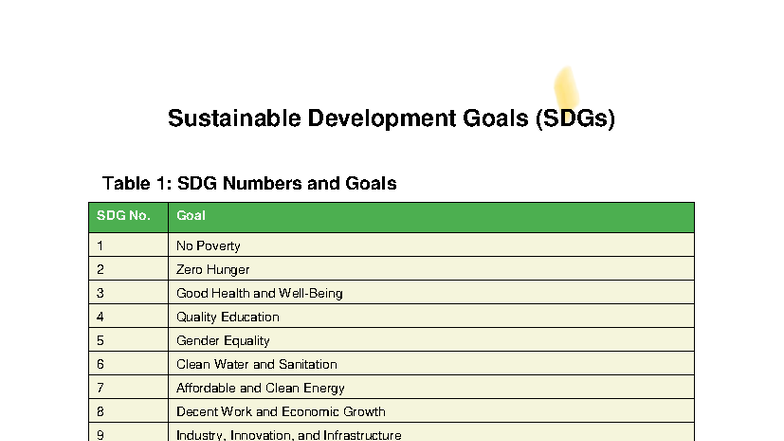 SOLUTION: SDG's (Sustainable Development Goals) Examples - Studypool