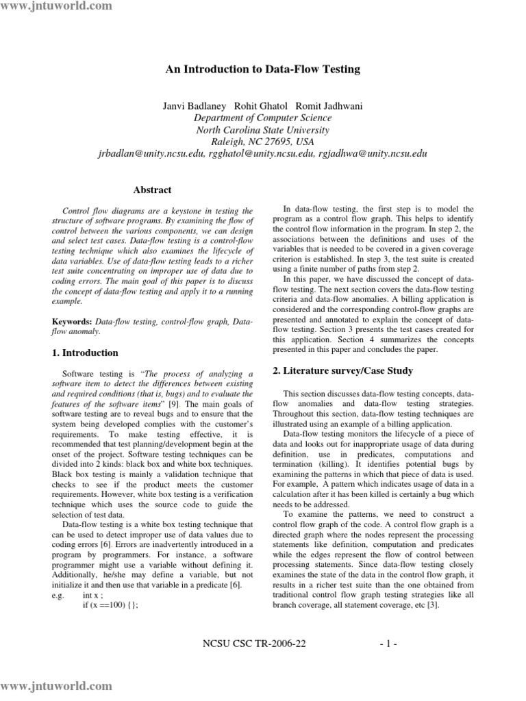 Data Flow Testing in Software Testing - JNTUA | PDF