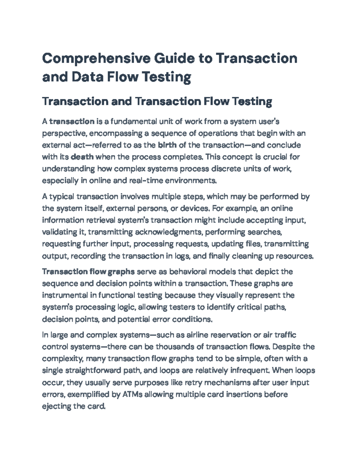 Transaction and Data Flow Testing: Comprehensive Methodologies Guide ...