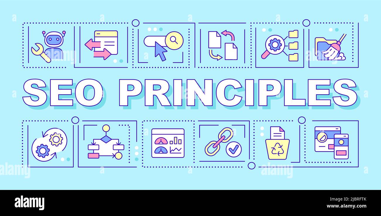 Search engine optimization principles word concepts blue banner Stock ...