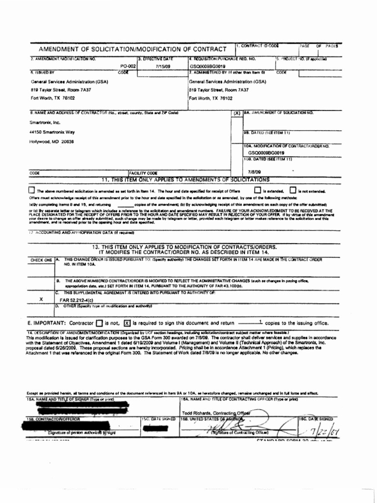 Fillable Online sf30. Amendment of Solicitation/ Modification of ...