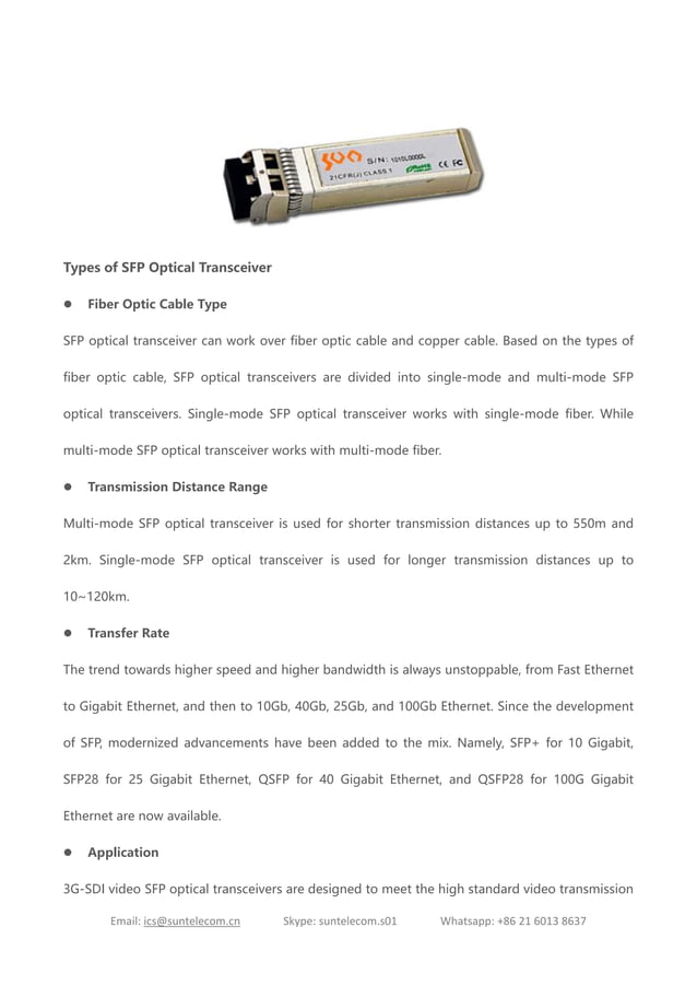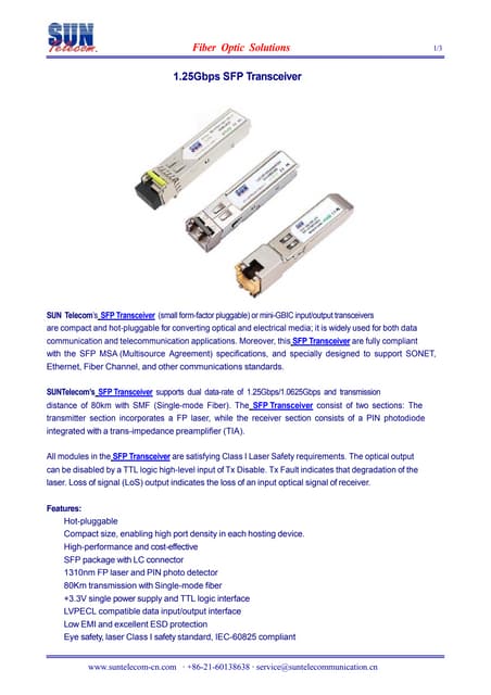 A Comprehensive Understanding of SFP Optical Transceiver | PDF