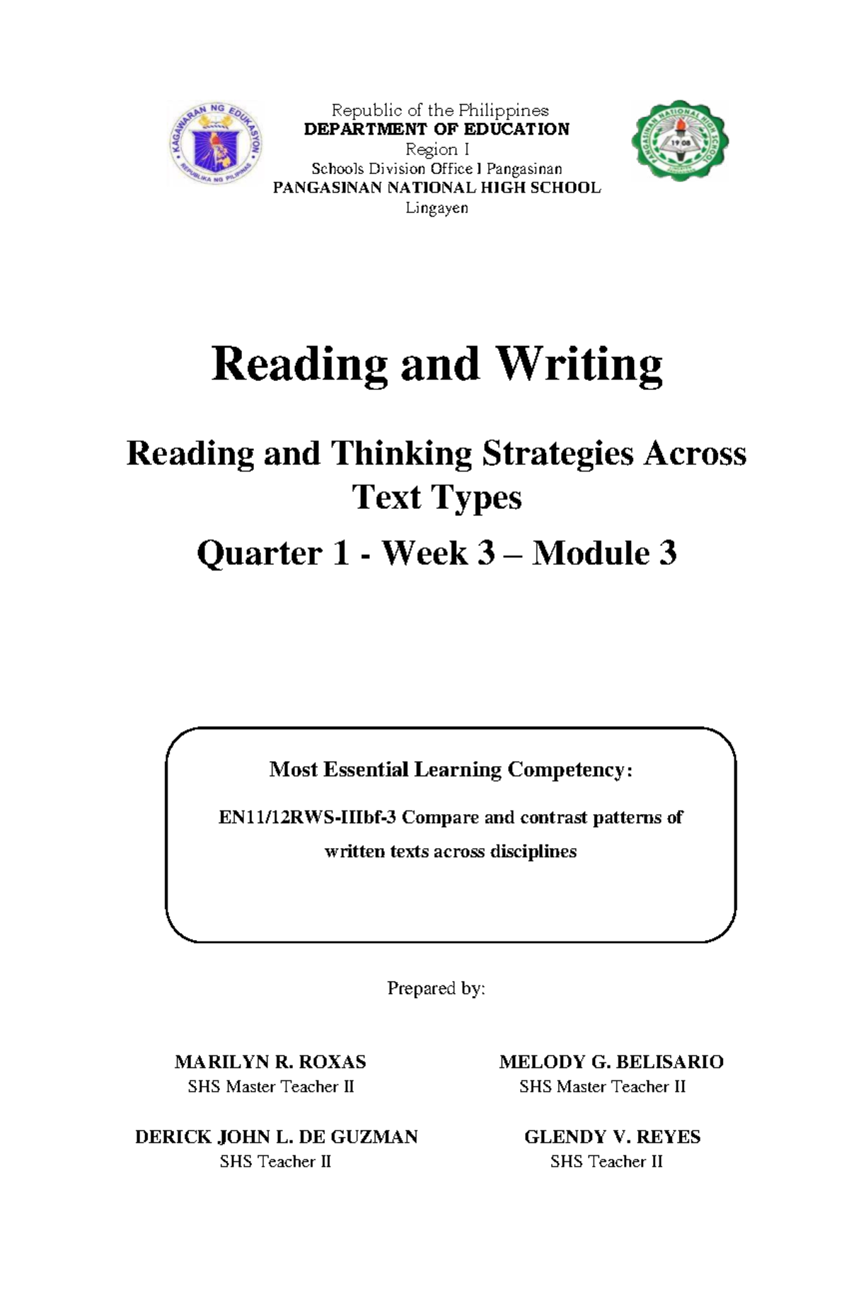 CO_Q3_Reading and Writing Skills SHS Module 1: Patterns of Development ...