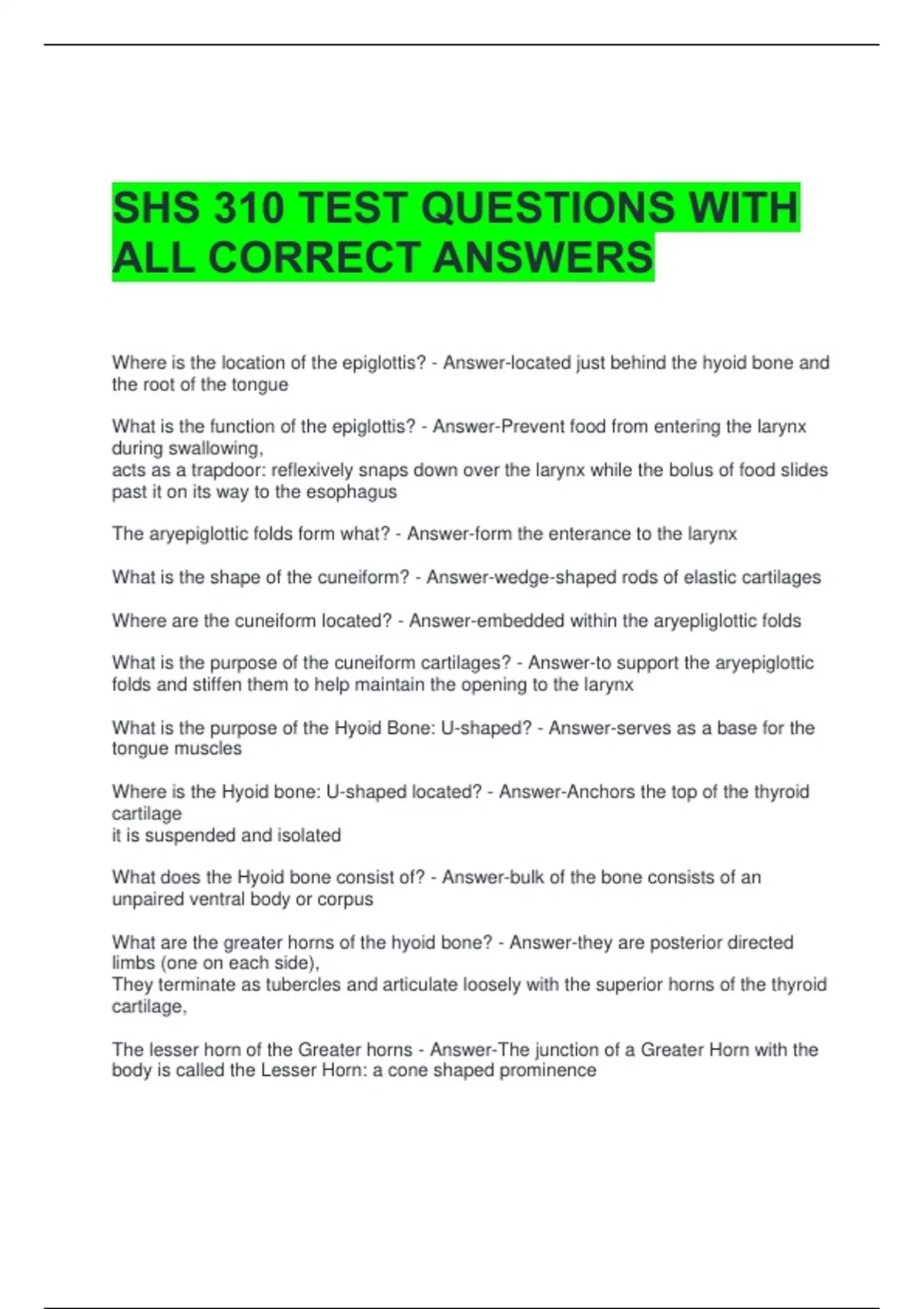 SHS 310 TEST QUESTIONS WITH ALL CORRECT ANSWERS - SHS 310 - Stuvia US