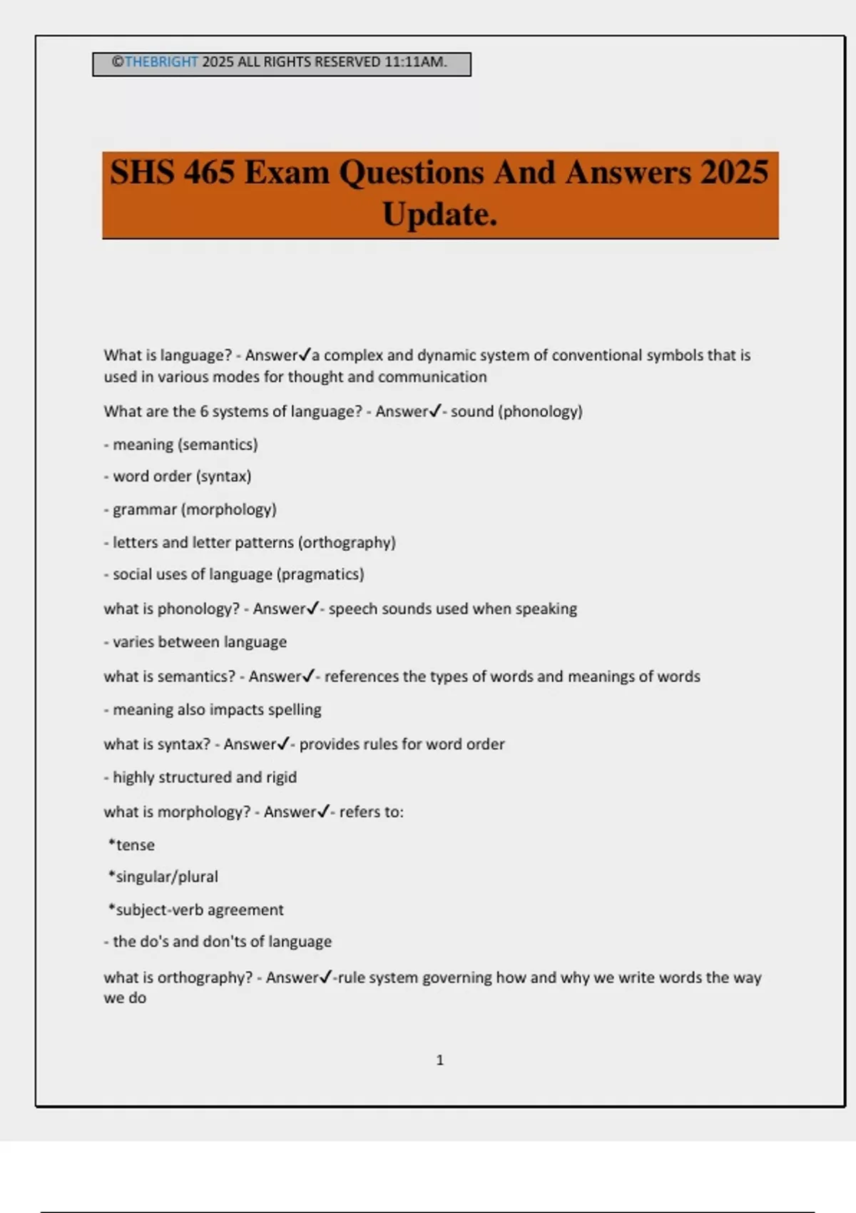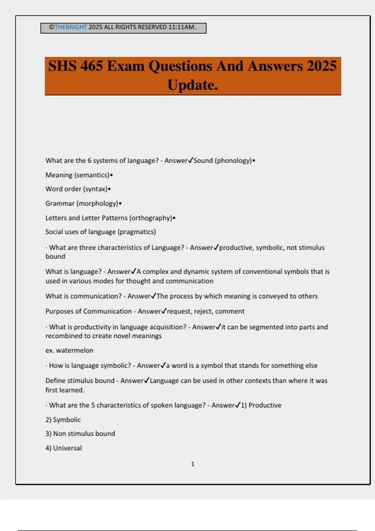SHS 465 Exam Questions And Answers 2025 Update - SHS 465 - Stuvia US