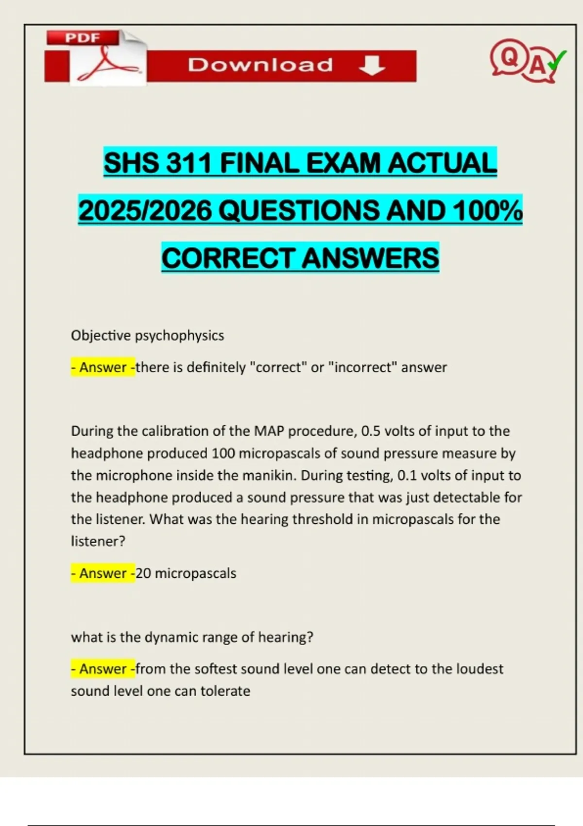 SHS 311 FINAL EXAM ACTUAL 2025/2026 QUESTIONS AND 100% CORRECT ANSWERS ...