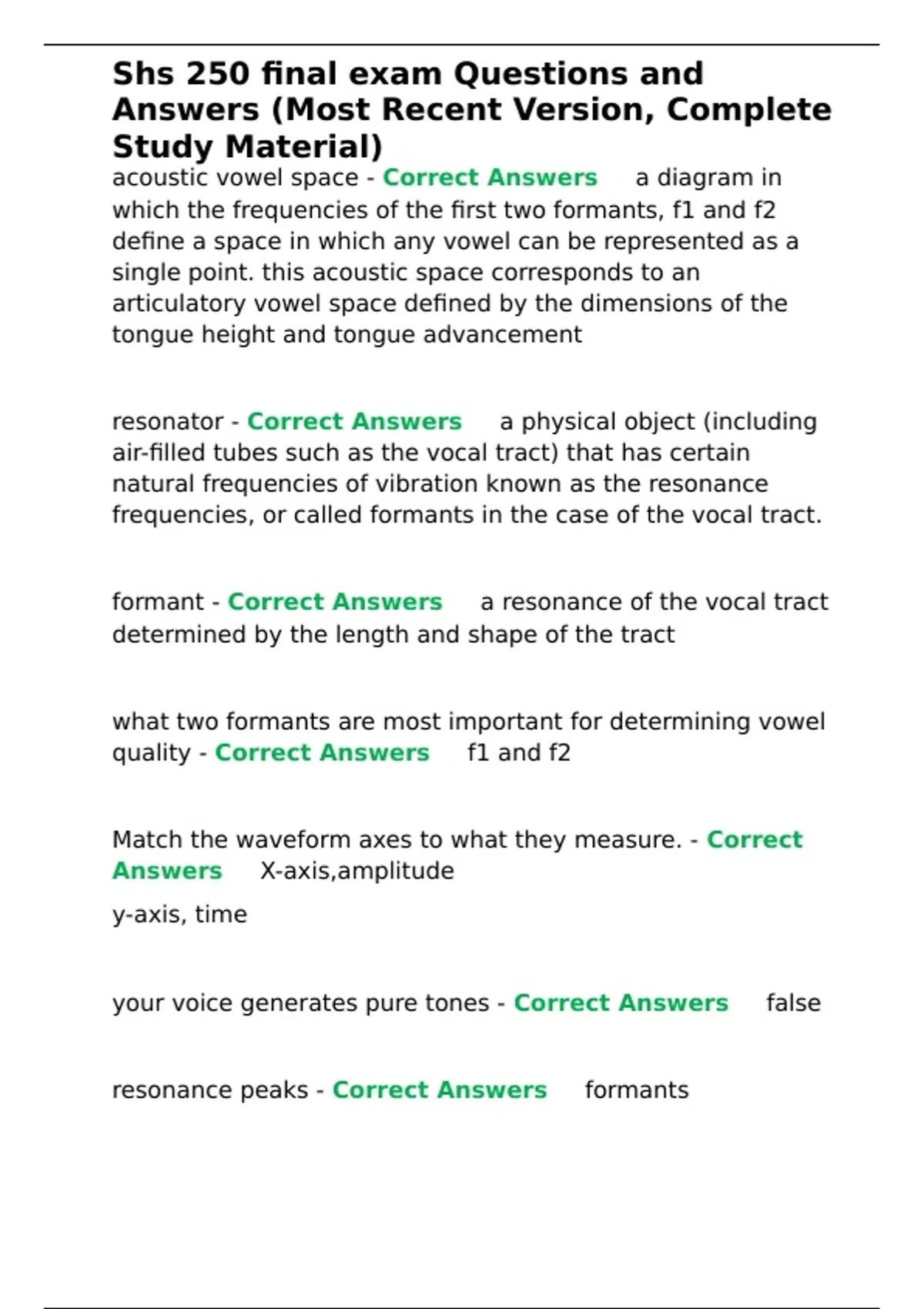 Shs 250 final exam Questions and Answers (Most Recent Version, Complete ...