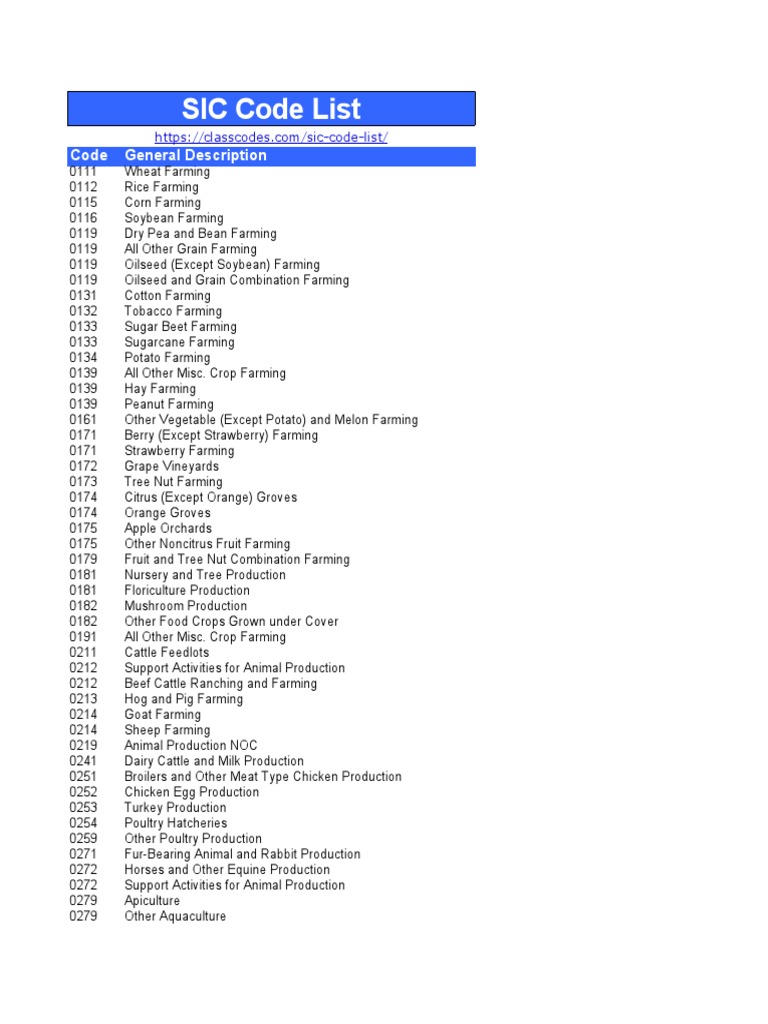 Business Classification Sic Code at Iris Morris blog
