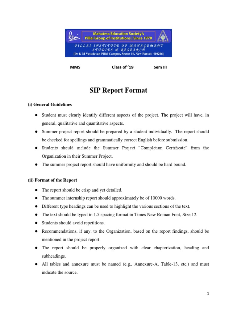 SIP Report Structure and Guidelines | PDF | Marketing | Business