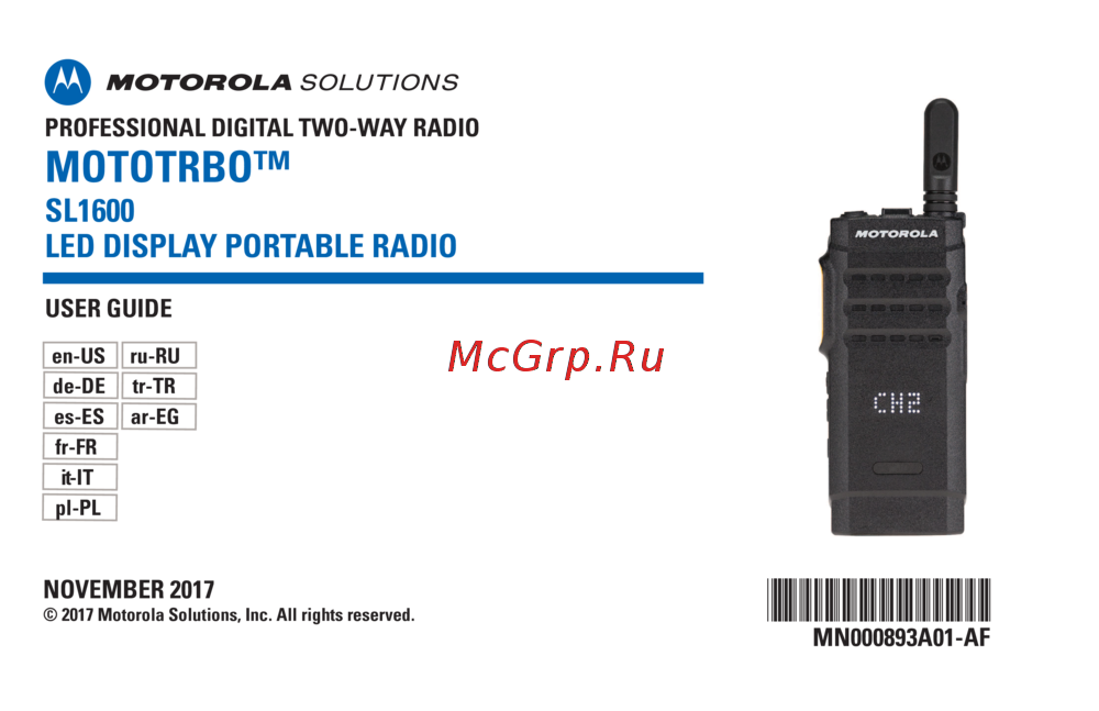 MN000918A01-AH Multilingual MOTOTRBO Portable SL1600 Basic Service ...