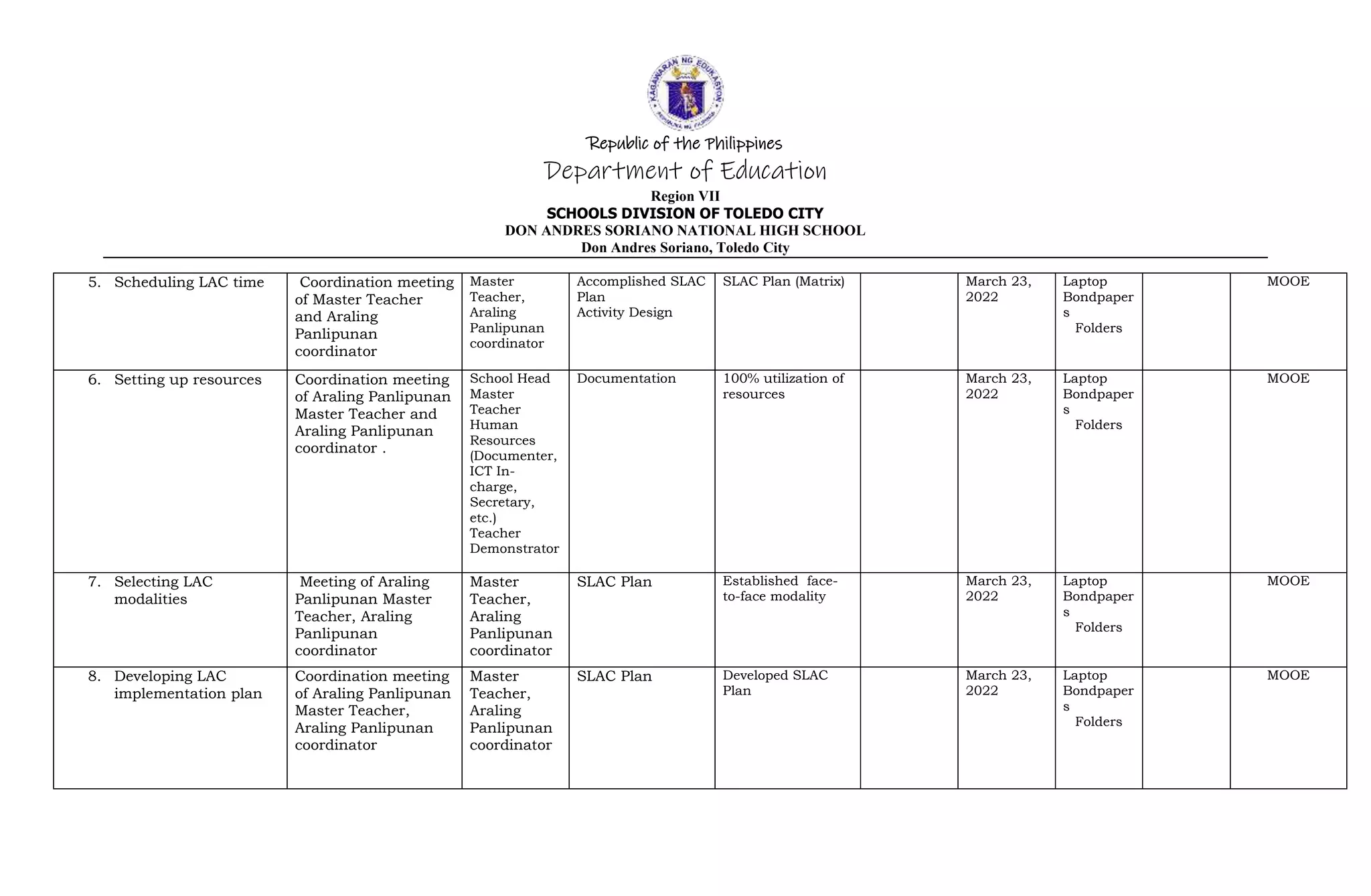 SLAC PLAN 1ST Quarter - Sample SLAC Plan - Republic of the Philippines ...
