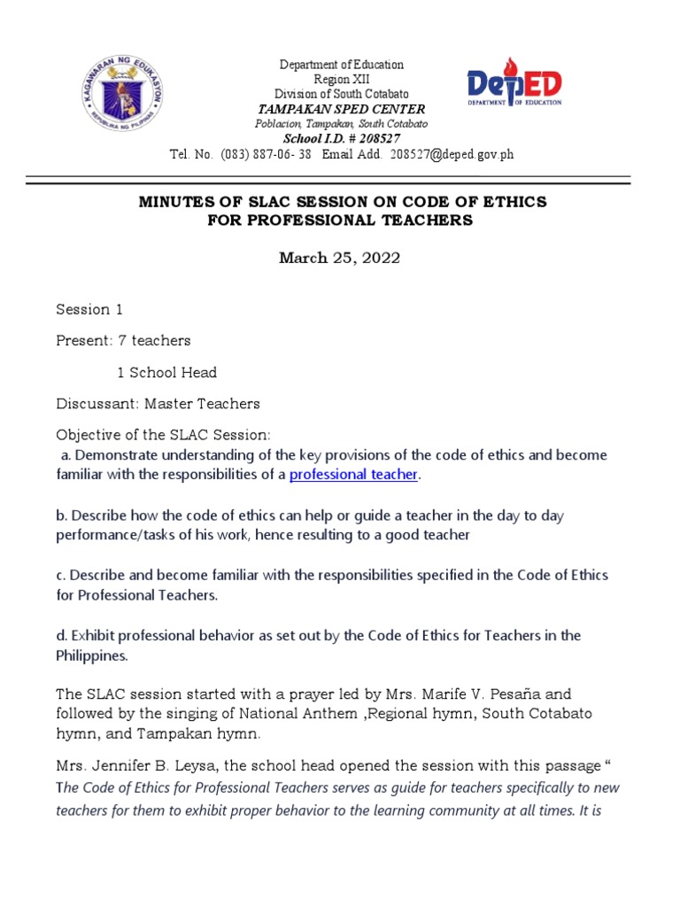 Minutes of Slac | PDF | Profession | Integrity